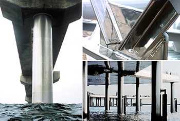 Titanium is high-corrosion-resistant to sea water that is almost equivalent to platinum and is able to keep protecting structures for very long period. With titanium having high strength and superior corrosion-resistance, a foil of only 0.1mm-thick (corrosion-resistant titanium foil) is able to isolate structures from causes of corrosion also contributive to reduction of maintenance costs and improvement of LCCs.