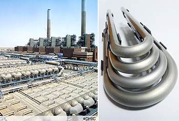 Titanium has high-corrosion-resistance to seawater, hence superior reliability and -durability. Titanium tubes superior in corrosion resistance to seawater have been playing an important role in seafront power plants where seawater is used in its condenser to cool steam after making rotation of the turbines. Also, titanium tubes are often used in bulk as heat exchanger tubes to move seawater inside as cooling fluid in desalination plants where freshwater is made from seawater, thus contributing to the daily lives of people.