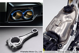 Commercially pure titanium and titanium alloys are widely utilized for various two/four-wheeled vehicle's materials such as exhaust system parts and engine parts.